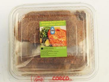 Descripción: Envase con 5 a 7 milanesas con separadores. Para freezar. Milanesa de suprema,rebozador integral orgánico, ajo, perejil, huevo y sal.